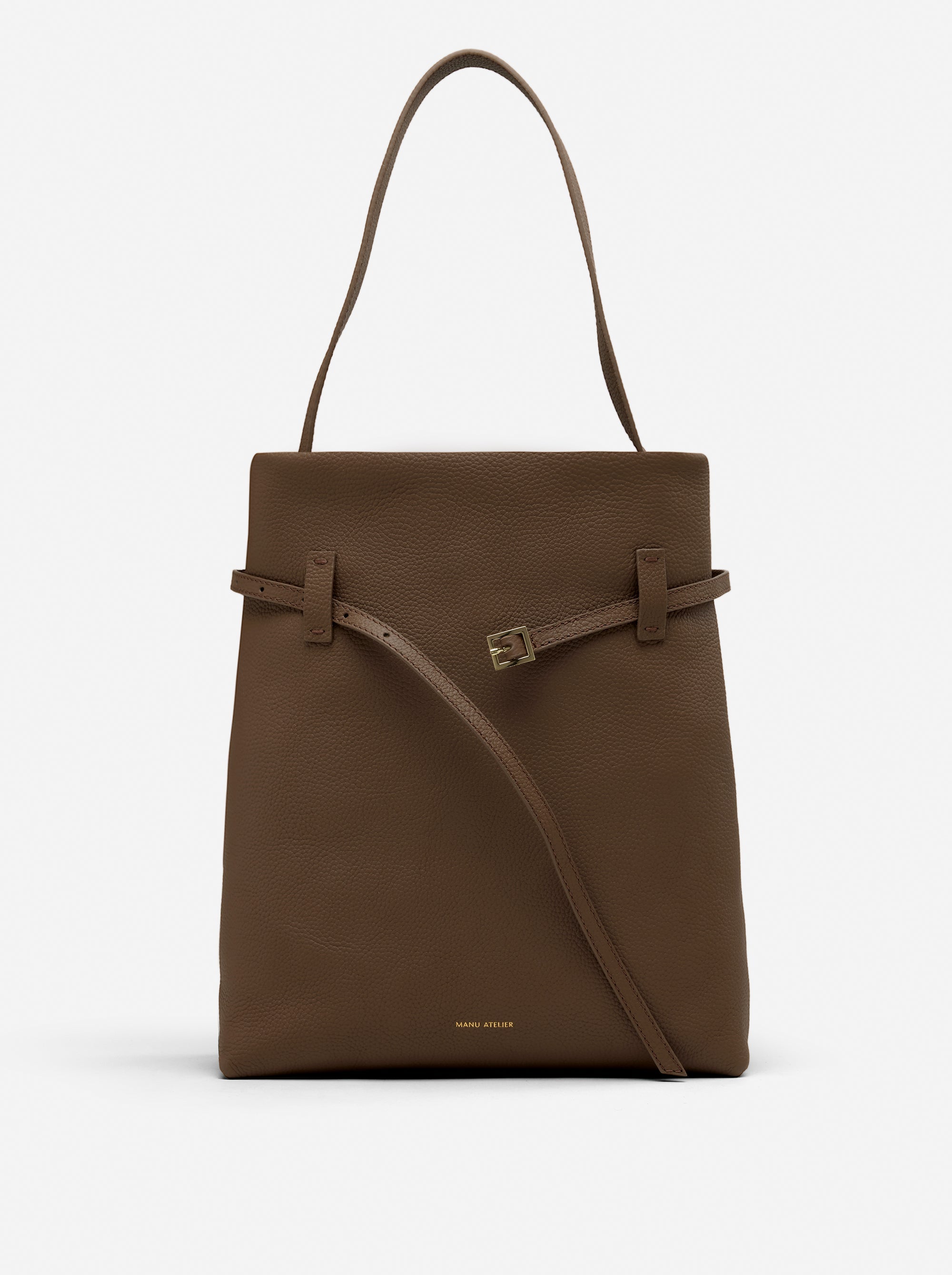 One of our signature pieces, Tote du Jour, places simplicity, craftsmanship, and sleek details at the forefront, underscoring a sense of freedom while keeping in step with the pace of metropolitan life. With its spacious interior which has a zipped pocket and four card slots, the Tote du Jour bag can fit a 13’’ MacBook Pro and all your everyday essentials. The adjustable leather belt with light gold-toned metal buckle adds a touch of sleek distinction. Magnet closure offers an ease of use. The signature light-gold toned “Manu Atelier” logo is embossed on the bottom center of the front panel. It’s a statement piece embodying a combination of functionality and sophistication.