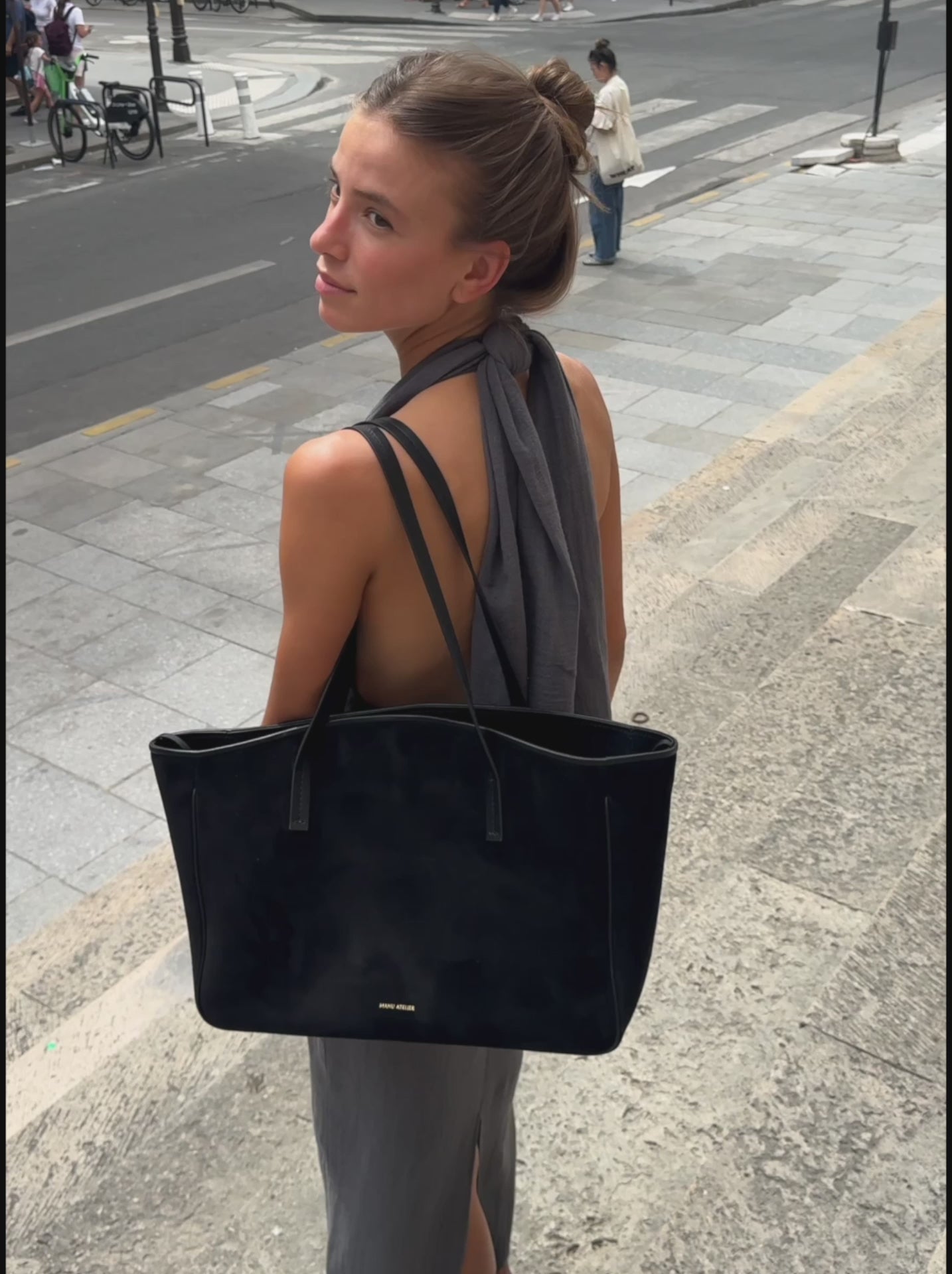 Interior zipped pocket with a Manu Atelier embossed logo
