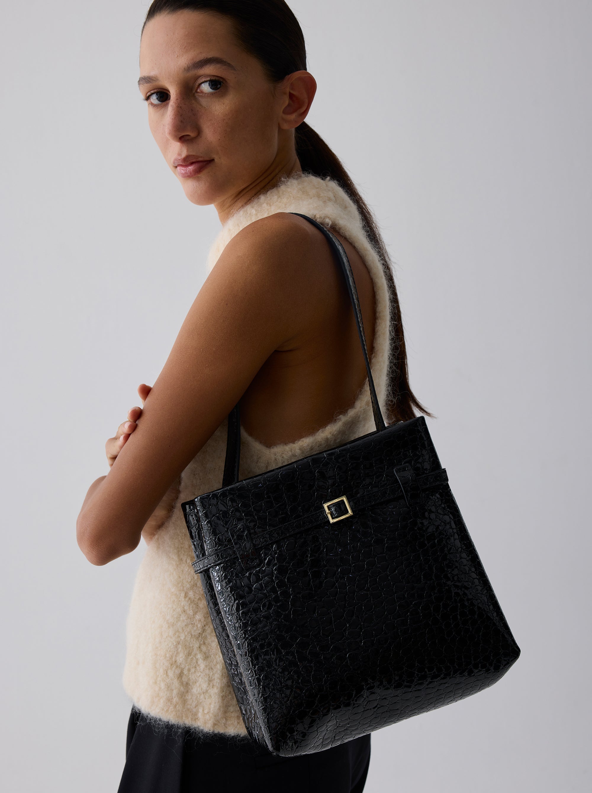 Mini Tote du Jour Black Croc