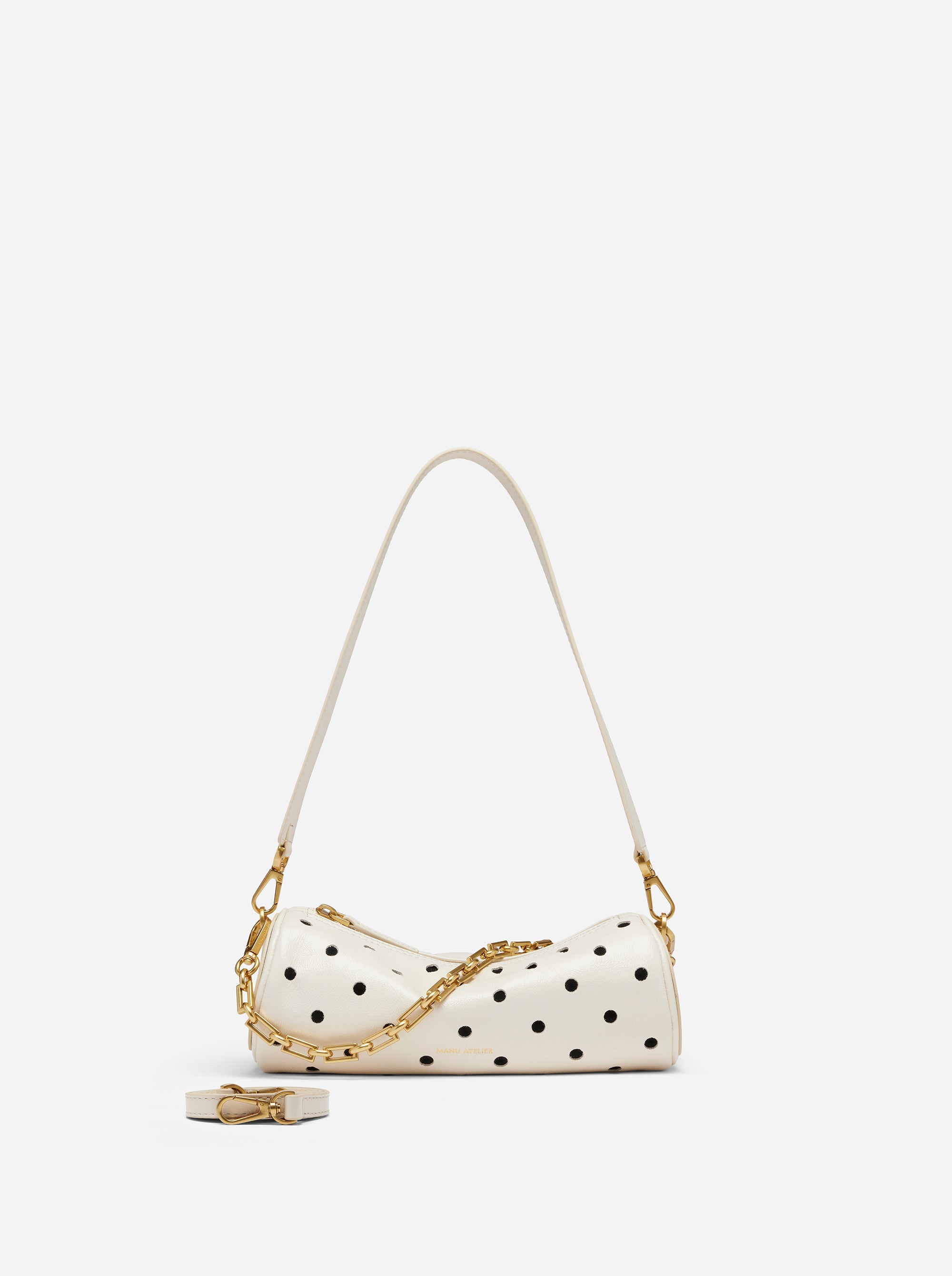 Mini Cylinder Perforated Ecru High Gloss & Black Suede