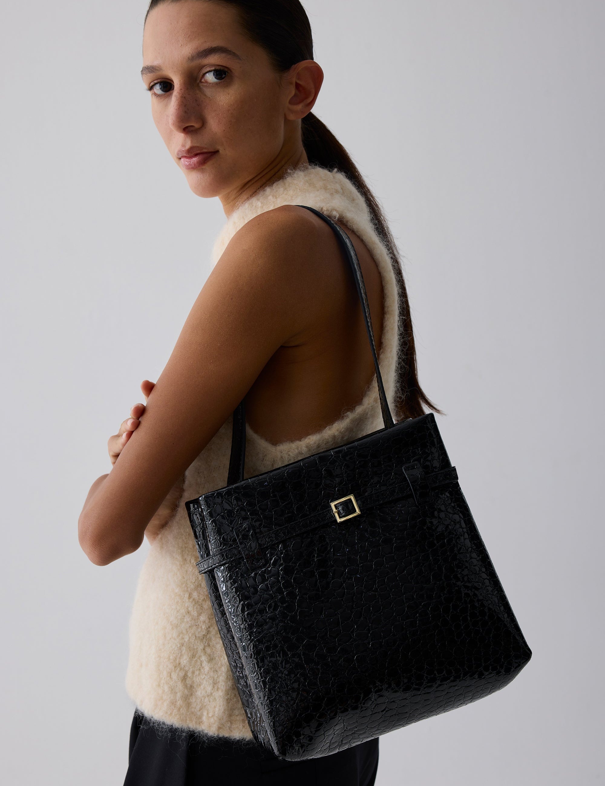 A compact reimagining of the iconic Tote du Jour, this mini version offers the same timeless elegance in a smaller, more versatile silhouette. It effortlessly carries your essentials, seamlessly transitioning from day to evening with refined poise and practicality.