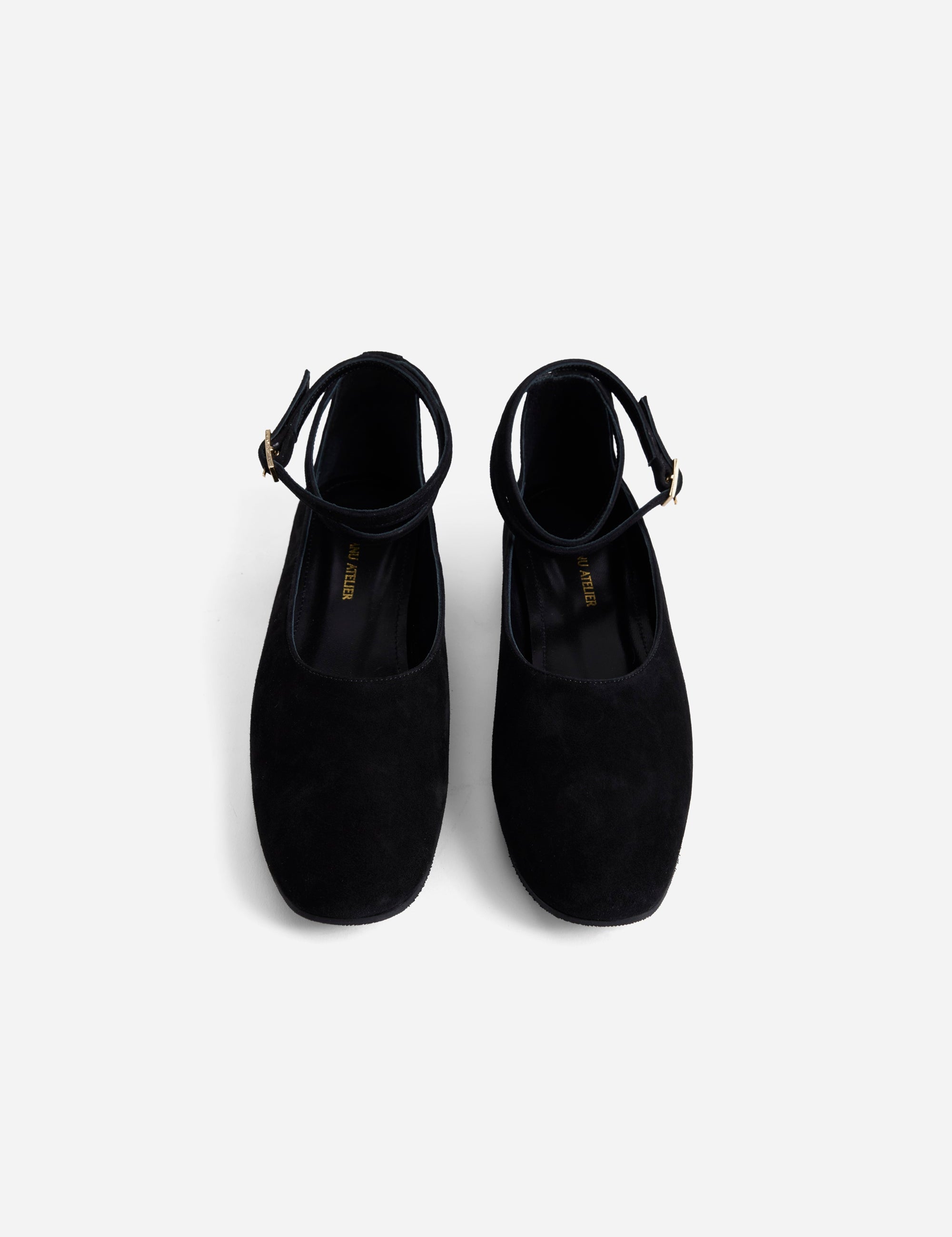 Manu Ballet Flats With Cross Over Ankle Strap Black Suede