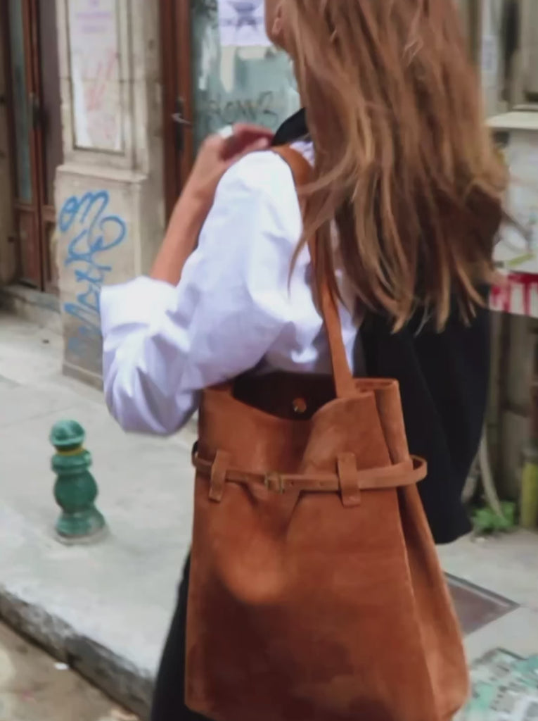 The Tote du Jour is meticulously crafted from premium leather and suede, offering a harmonious blend of luxury and practicality. Its understated design elevates daily attire, making it an essential accessory for the modern, discerning wardrobe.